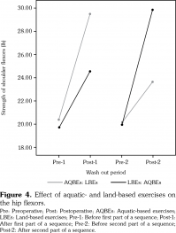 Juvenile dermatomyositis is a consequential sickness that induces proximal muscle weakness, fatigue, lack of physical activity, and skin diseases. Since the establishment of new treatments, the concentration of outcome measures has transferred from mortality towards morbidity, functional activity, fatigability, QoL, and skin disease activity.[26,27] This study had two main objectives. First was to compare AQBEs versus LBEs in improving proximal muscles strength of upper and lower extremities, general fatigue and QoL, and skin disease activity (DAS skin score) in children with JDM. Second was to evaluate the influence of the treatment sequence in the same outcome measures in children with JDM. The findings suggested that AQBEs have superiority over LBEs in increasing hip flexors and abductors muscles’ strength, decreasing general fatigue using PedsQL-MFS, and improving DASskin scores, while there were no differences in the treatment sequence starting with aquatic or land exercises. On the other hand, there was a similar improvement of shoulder flexors and abductors muscles’ strength in both types of exercises.