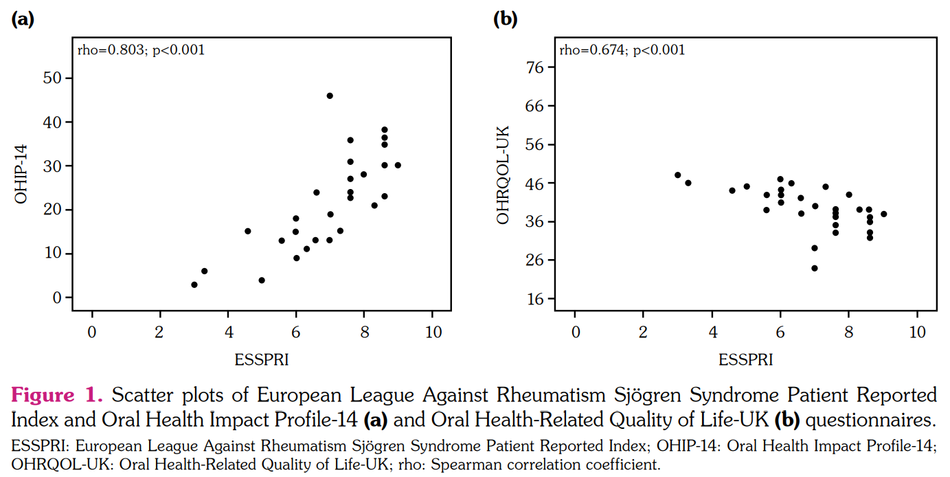 - Seror R, Ravaud P, Mariette X, Bootsma H, Theander E, Hansen A, et al. EULAR Sjogren's Syndrome Patient Reported Index (ESSPRI): development of a consensus patient index for primary Sjogren's syndrome. Ann Rheum Dis 2011;70:968-72. DOI: 10.1136/ard.2010.143743