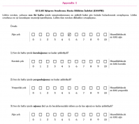During the ESSPRI cross-cultural adaptation process, previously recommended procedures were followed in five stages.[22,23] First, the questionnaire was translated from English to Turkish by two different independent translators, whose native language was Turkish, and then both translations were synthesized into one. Second, another two independent translators (native English speakers), who were unaware of the original items, performed back-translations of the previously obtained Turkish translation of the questionnaire. After the translations were completed, four physiotherapists experienced in pSS, who did not participate in the translation processes, held a consensus meeting and prepared the pre-final version. Finally, the pre-final version of ESSPRI (TR) was administered to 10 patients with pSS to evaluate comprehensibility and to determine other linguistic fine-tuning. During these interviews, no conflicts were obtained related to the comprehension or clarity of the items. The three-item ESSPRI (TR) is presented in Appendix 1.