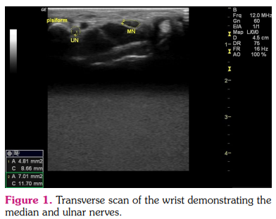 17. Reckelhoff KE, Li J, Kaeser MA, Haun DW, Kettner NW. Ultrasound evaluation of the normal ulnar nerve in guyon's tunnel: Cross-sectional area and anthropometric measurements. Journal of Medical Ultrasound 2015;23:171-6. DOI: 10.1016/j.jmu.2015.09.002
