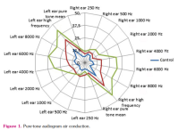 An experienced otorhinolaryngologist performed a physical examination of the ear, nose, and throat and audiological tests. An otoscopic examination had done to prove a healthy tympanic membrane. All subjects were questioned for tinnitus, vertigo, facial nerve function, and family history of hearing loss. The audiological assessments include pure-tone audiometry at conventional and extended high frequencies and impedance audiometry.