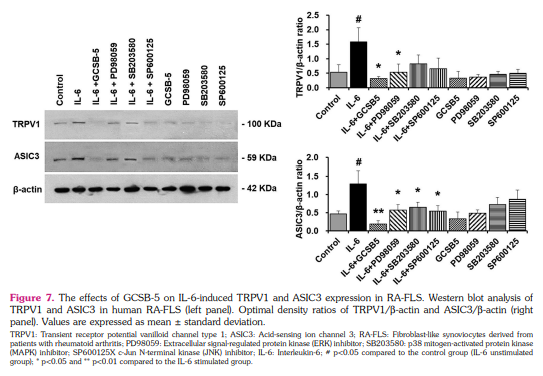 Effects of GCSB-5 on TRPV1 and ASIC3 in FLS derived from patients with RA