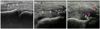 The indicators of ultrasound evaluation included: (i) synovial hypertrophy (SH); (ii) intra-synovial power Doppler (PD) signals; (iii) BE; (iv) tendonitis; (v) and tenosynovitis. Among them, SH, PD, and BE grading criteria were divided into 0-3 grades according to the Szkudlarek criteria (Table 1).[8] The examiner was blinded to the diagnosis made by the clinician and did not use the examination results as a reference for the clinician's diagnosis.