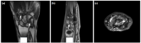 The degree of BE and synovial hyperplasia in SNRA or SPRA is more serious, and the blood flow signal is more abundant. However, the degree of synovial hyperplasia in osteoarthritis was mild, and no obvious blood flow signal was detected (Figures 1, 2, 3 and 4). Magnetic resonance imaging (MRI) studies of SPRA also showed serious BE (Figure 5).