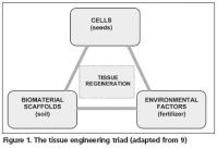 The term “tissue engineering” has now come to encompass a wide range of strategies employing cells, synthetic and processed natural materials, tissues, cytokines and genes for the regeneration of tissue in vivo or the production of tissue in vitro. Cell therapies and tissue transplant procedures are thus now often considered under the rubric of tissue engineering[16].