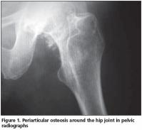 Heterotopic ossification is a pathological new bone formation occurring in tissues that would not normally ossify. The ectopic bone is located extra-articularly and the joint capsule is intact. It occurs in the connective tissue between muscle layers[1]. The etiopathogenesis is not clear yet. However, tissue hypoxia caused by circulatory disorders, abnormal calcium metabolism, loss of control in the sympathetic nervous system, microtraumas connected to range of motion exercises, and genetic factors are suggested[2]. When etiological factors are taken into consideration, heterotopic ossification can be handled under the headings of neurogenic or traumatic. Neurogenic heterotopic ossification occurs after head trauma, spinal cord injuries and cerebrovascular events. Traumatic heterotopic ossification occurs after fractures, total hip and knee arthroplasty and direct traumas related to sports injuries. In addition, it may occur during the course of burns, systemic metabolic diseases, connective tissue diseases, and malignancies[3].