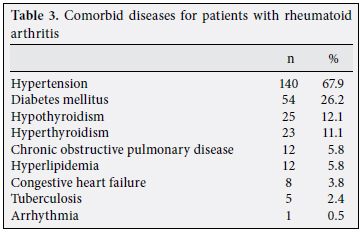 Hypertension was the most frequently presented disease with our RA patients. It has been reported that the incidence of hypertension increases in RA patients compared with the general population. This is most likely triggered by inflammation.[16]