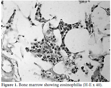 Eosinophilia in the bone marrow may be seen with some dermatological or autoimmune diseases, but in these cases, the erythroid, myeloid and megakaryocytic series of bone marrow remain normal and are available in normocellular or hypercellular forms. Increases in the eosinophils of the bone marrow in pancytopenia patients due to the drugs they must take causes a decrease in hematopoiesis in the erythroid, myeloid and megakaryocytic series and the hypocellular bone marrow. In addition, reactive lymphocytes, plasma mast cells, and macrophages along with increased iron storage can be seen.[4]