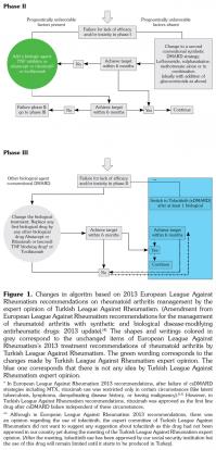 Conclusion: Expert opinion of Turkish League Against Rheumatism for treatment of rheumatoid arthritis patients was formed for practices in Turkish clinics.
