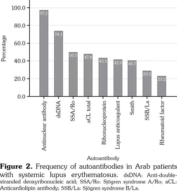 Conclusion: Systemic lupus erythematosus displays several different clinical and serologic characteristics, both among different Arab populations and in comparison to other ethnic groups.