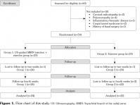 One patient from group 1 (US-guided SBRN injection+exercise) and three patients from group 2 (exercise-only) withdrew from this study for private reasons. No patient was excluded from this study due to side effects of the treatment. The present study was completed with a total of 46 patients (group 1; n=24 and group 2; n=22) (Figure 1).