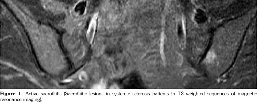 Citation: Arslan D, Türk İ, Kozanoğlu E, Kudaş Ö, Kelle B, Sakallı H. Sacroiliitis Detected by Magnetic Resonance Imaging in Patients With Systemic Sclerosis. Arch Rheumatol 2020;35(4):515-520.