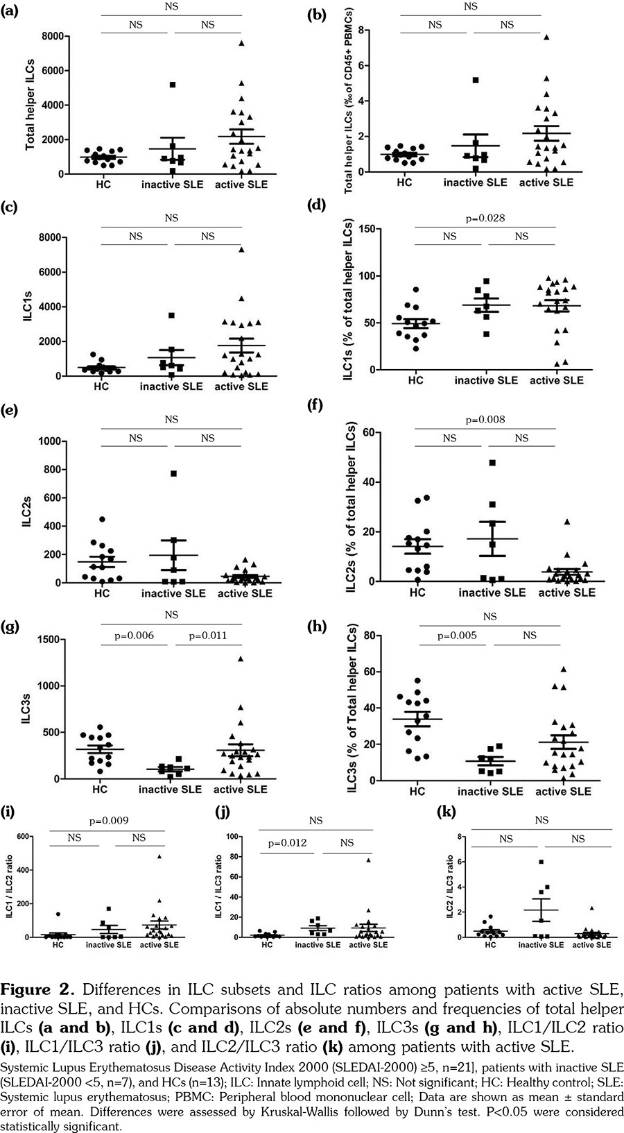 Citation: Jiang Y, Zhao Y, Liu Y, Huang Q, Meng W, Xu H, et al. Imbalanced innate lymphoid cells are associated with disease activity and arthritis involvement in patients with systemic lupus erythematosus. Arch Rheumatol 2020;35(4):521-532.