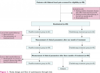 In this prospective randomized controlled study, 98 patients who applied to Necmettin Erbakan University, Meram Faculty of Medicine, Physical Medicine and Rehabilitation between July 2017 and March 2018 with the complaint of bilateral hand pain were assessed for eligibility. All patients were examined by the same researcher for the diagnosis of primary hand OA according to the ACR criteria.[28]