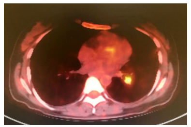 Fever of unknown origin (FUO) in adults is defined as a temperature higher than ≥38.3°C (101°F) that lasts for more than three weeks with no obvious source, despite appropriate investigation.[1] Herein, we present a case with a long febrile period in whom positron emission tomography-computed tomography (PET-CT) had a high maximum standardized uptake (SUVmax) nodule and diagnosed as a pulmonary arterial aneurysm (PAA) due to Behçet’s syndrome (BS) after a detailed medical history/physical examination.