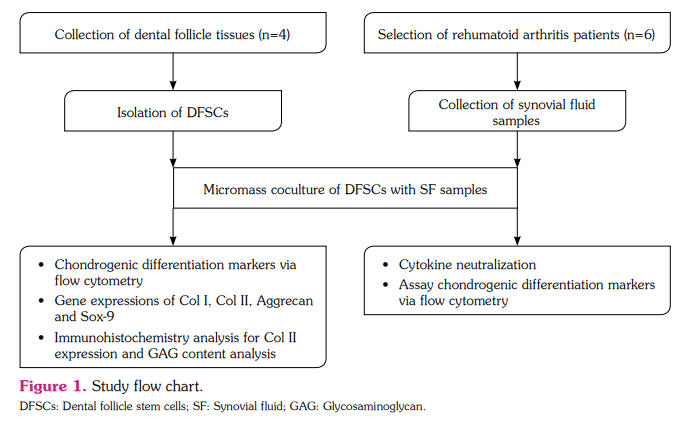 Citation: Genç D, Sezer Kürkçü M, Yiğittürk G, Günaydın B, Elbe H, Akın Aladağ A, et al. Synovial fluid niche promoted differentiation of dental follicle mesenchymal stem cells toward chondrogenesis in rheumatoid arthritis. Arch Rheumatol 2022;37(1):94-109.