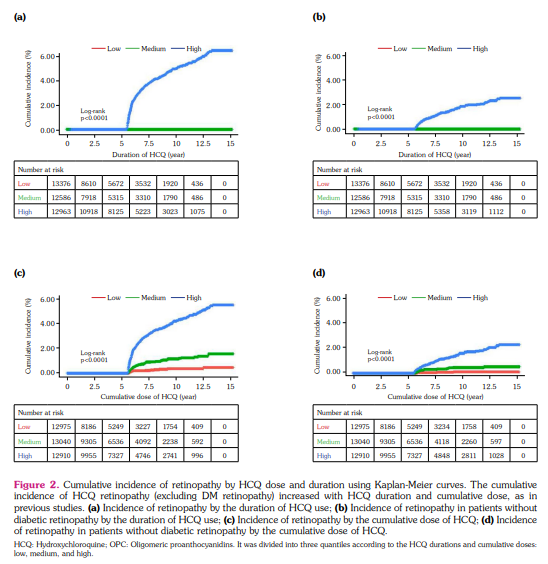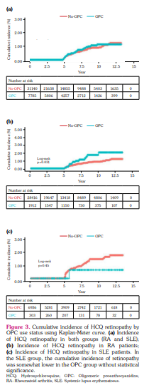 In conclusion, the HIRA aids research on rare conditions, adverse events, and preventative effects of drugs in socially marginalized groups such as older and disabled adults who are seldon enrolled in RCTs. Although co-use of OPC did not significantly reduce this, it may be necessary to repeat the analysis, when SLE patients accumulate longer OPC exposure. Efforts to avoid permanent visual loss caused by HCQ retinopathy must be redoubled.