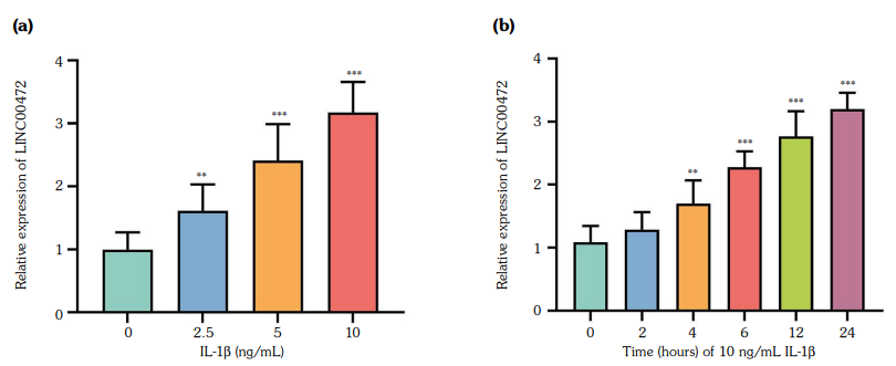 To explore the distribution of LINC00472 in chondrocytes, we used the PARIS Kit (Invitrogen, Waltham, MA, USA) to isolate RNA from the nucleus and cytoplasm of chondrocytes. We performed RT-qPCR to measure LINC00472 levels in the nucleus and cytoplasm. U6 and GAPDH were employed as nuclear or cytoplasmic controls.