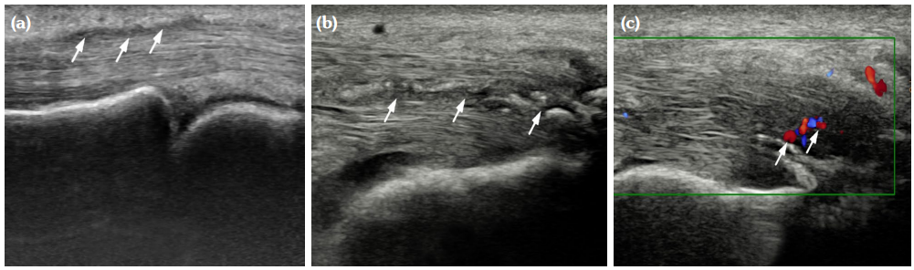 - Filippucci E, Gabba A, Di Geso L, Girolimetti R, Salaffi F, Grassi W. Hand tendon involvement in rheumatoid arthritis: An ultrasound study. Semin Arthritis Rheum 2012;41:752-60. doi: 10.1016/j. semarthrit.2011.09.006. DOI: 10.1016/j.semarthrit.2011.09.006
