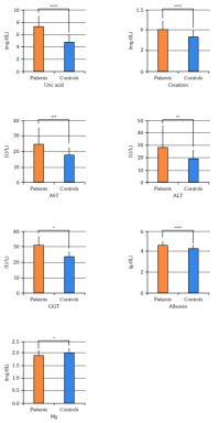 Serum high-density lipoprotein cholesterol (HDL-C), low-density lipoprotein cholesterol (LDL-C), triglyceride, aspartate aminotransferase (AST), alanine aminotransferase (ALT), gamma glutamyl transferase (GGT), urea, creatinine, uric acid, albumin, calcium (Ca) and magnesium (Mg) levels were measured by spectrophotometric methods on a Roche Cobas 702 (Roche Laboratories, Basel, Switzerland) biochemistry autoanalyzer.