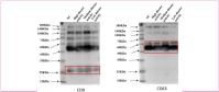 Upon identification using TEM, the successful extraction of exosomes (Figure 1) was confirmed, which is consistent with previously described exosomal structures. All exosome samples were sent to Shanghai Huayin Biomedical Technology Co., Ltd. for nanoparticle tracking analysis to measure particle size and concentration (Figure 2). The exosome particle size in SLE patients with high disease activity was the smallest. In terms of particle concentration, the highest concentration was observed in the low and moderate disease activity groups of SLE patients, followed by the high disease activity group, with the lowest concentration found in the normal control group (Table 2). Surface markers on the extracted exosomes were also detected (Figure 3), with CD9 and CD63 expression observed in both the control and SLE patient exosomes.