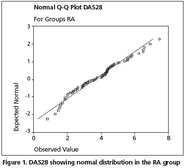 In the present study, DAS28-4v and SF-36 were compared in patients with RA, which is a chronic inflammatory disease, and in patients with FM, which is a chronic non-inflammatory disease.