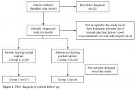 Patients who were referred from a general physical medicine and rehabilitation practice outpatient clinic to our “special shoulder outpatient clinic” due to shoulder pain were assessed. Those who were diagnosed as having SIS according to physical examination and MRI findings were eligible for the study. Patient selection and group constitutions can be seen in Figure 1.