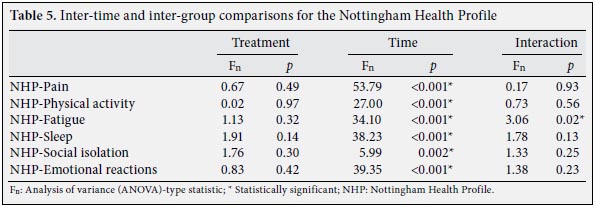 Although there were no significant differences between the groups in terms of age and duration of symptoms, the gender distribution was different (Table 1), but since gender is not a factor that affects the response to the treatments in MPS, the authors ignored this difference. The descriptive statistics of the groups are presented in Tables 2 and 3. The groups were similar in terms of pre-treatment algometric sensitivity, VAS-pain scores, restrictions regarding neck range of motion, and NHP. The p values are provided in Tables 4 and 5.