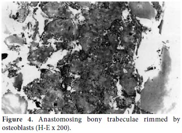 Surgical resection of the osteoid osteoma through a direct incision located at the sacroiliac joint brought immediate relief of the symptoms, and a pathological examination after en bloc surgical excision revealed the diagnosis (Figures 3 and 4).
