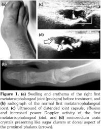 - Thiele RG, Schlesinger N. Diagnosis of gout by ultrasound. Rheumatology (Oxford) 2007;46:1116-21.