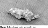 - Yetkin H, Takka S, Kanatli U. Surgical treatment of chronic tophaceous gout arthritis in the feet: a case report. Foot Ankle Surg 1999;5:155-7.