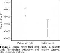 Fibromyalgia syndrome (FMS) is a chronic pain syndrome accompanied by widespread musculoskeletal pain, fatigue, sleep disturbances, functional disability, and mood disturbances.(1-3) It involves several factors, including abnormalities in the neuroendocrine and autonomic nervous systems, genetic factors, hormones, immune system, psychosocial variables, and environmental stressors.(4-6) Information on the physiopathological mechanisms are limited. There are studies indicating an imbalance between oxidants and antioxidants in patients with FMS.(7-10) The results are controversial. To the best of our knowledge, no report related to thiol/disulphide homeostasis in FMS has been published.