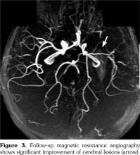 In conclusion, cerebral vasculitis should be suspected in all cases of HSP with neurologic manifestations. Magnetic resonance angiography is the modality of choice for diagnosis and follow-up evaluation. Although treatment options are numerous and controversial, combined therapy with pulse corticosteroid and pulse cyclophosphamide should be the first choice in pediatric patients.
