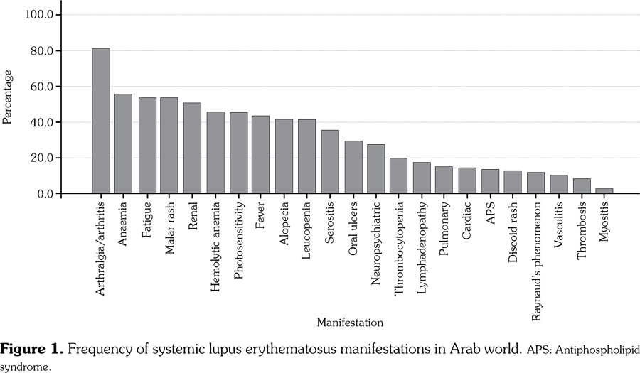 Conclusion: Systemic lupus erythematosus displays several different clinical and serologic characteristics, both among different Arab populations and in comparison to other ethnic groups.